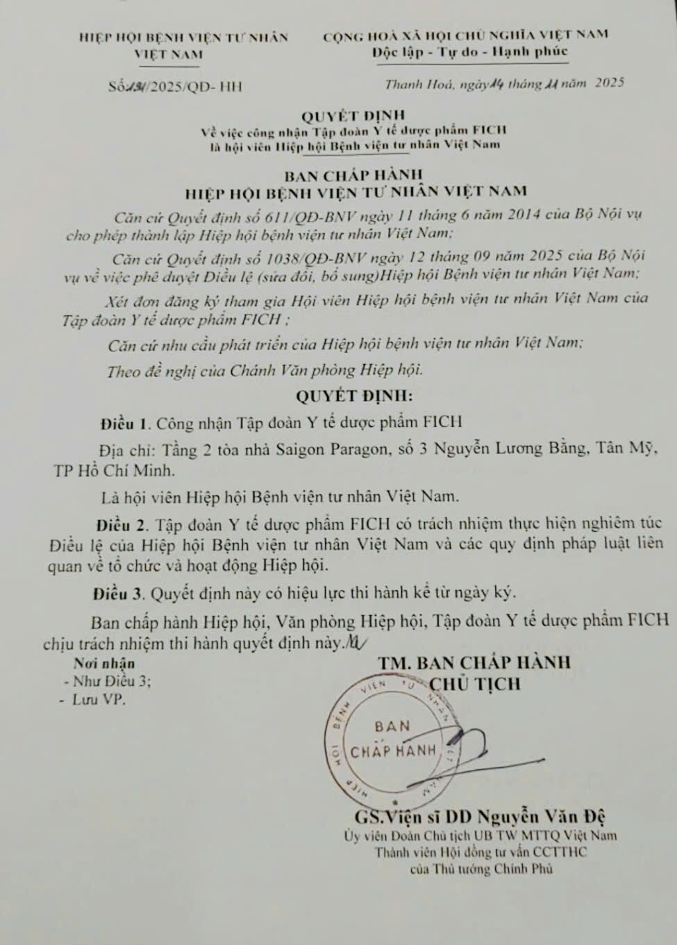 Joining the Vietnam Private Hospital Association marks a significant milestone and a strong commitment by FICH Group to deepen its contributions to the shared mission of Vietnam’s healthcare sector. FICH Group is a pioneer in Vietnam in the fields of hospital setup consulting, healthcare management consulting, and medical investment advisory.